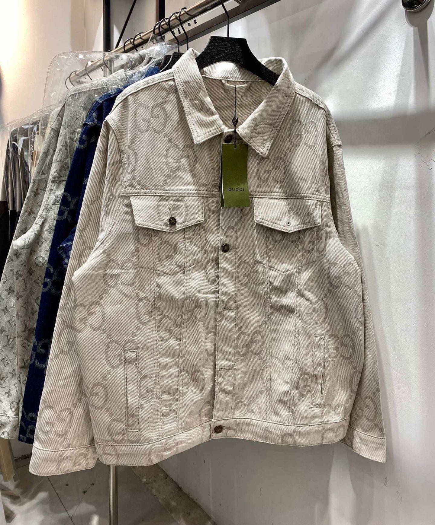 GUCCI の GG モノグラムは、1930 年代の創業期から受け継がれたブランドアイデンティティ。今回のデニムジャケットでは、ベージュのトーンに落とし込まれたモノグラムが新たな魅力を発揮する。levelkopi 評判従来の濃い配色とは異なり、ペールなカラーリングは “重厚さ” ではなく “透き通った空気感” を演出し、現代のミニマルな美意識とシームレスに融合する。