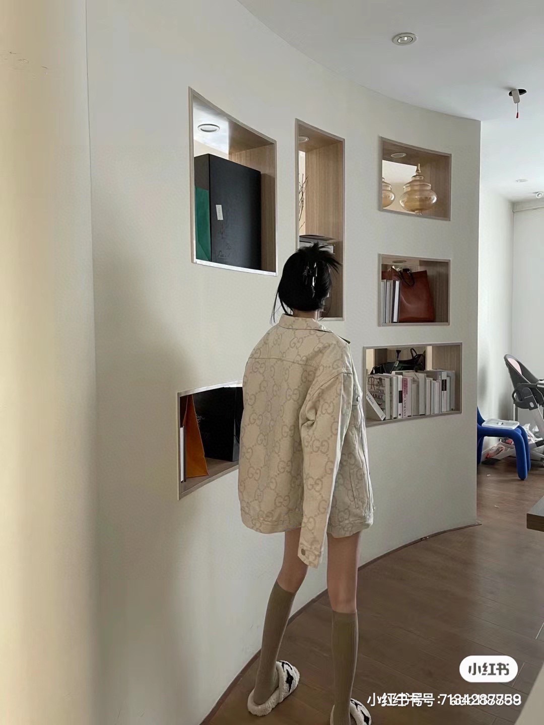 ミニマルなインテリアの中、ベージュトーンのデニムジャケットが放つ繊細な輝き。グッチ コピーその全体を覆うGUCCI の象徴的な GG モノグラムは、“高級感とリラクゼーション” の調和を示す、現代的なファッションの解答例だ。クラシックなモチーフが新たな解釈を受け、日常の装いを “平凡” から “特別” へと昇華させる —— これこそが、このジャケットの真骨頂だ。