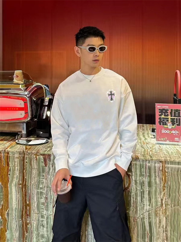 クロムハーツの象徴的なクロスモチーフと独特なフォントが大胆にアクセントされたこの CHROME HEARTS コピー トレーナーは、ホワイトの清潔感とブラックのグラフィックが生み出す強烈なコントラストが、瞬時にストリートファッションの主役に仕立て上げる一着です。ヘビーウェイトの素材感とロック調のデザインは、どこかアウトローな雰囲気を漂わせながらも、洗練された大人のラフスタイルを表現するアイテムです。単なるブランドの模倣ではなく、“個性的な生き方” を着こなすような存在感の高さが魅力の核心です。