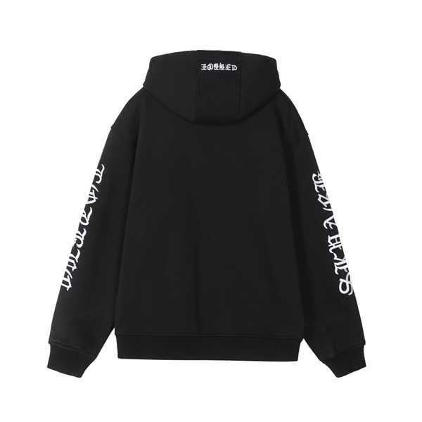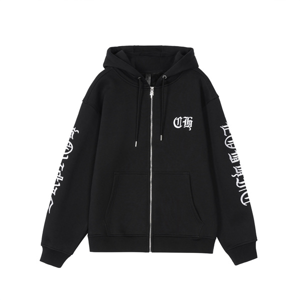 CHROME HEARTSならではの重厚感とストリートスピリットが際立つ、ジップアップ仕様のクロムハーツ コピー ジップアップ。ブラックを基調としたボディに、胸元と両スリーブへ配されたゴシック調ロゴが強いインパクトを放ち、一目でブランドの世界観を感じさせるデザインです。シンプルながらも圧倒的な存在感を持つ一着です。