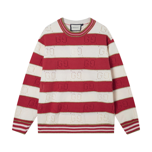 GUCCIらしいクラシックなムードと遊び心が融合した、ボーダーデザインのグッチ コピー ニットセーター。レッドとアイボリーの配色が目を惹き、どこかレトロな雰囲気を感じさせながらも、洗練されたラグジュアリー感をしっかりと演出します。全体にさりげなく編み込まれたロゴディテールが、ブランドの存在感を上品に主張します。