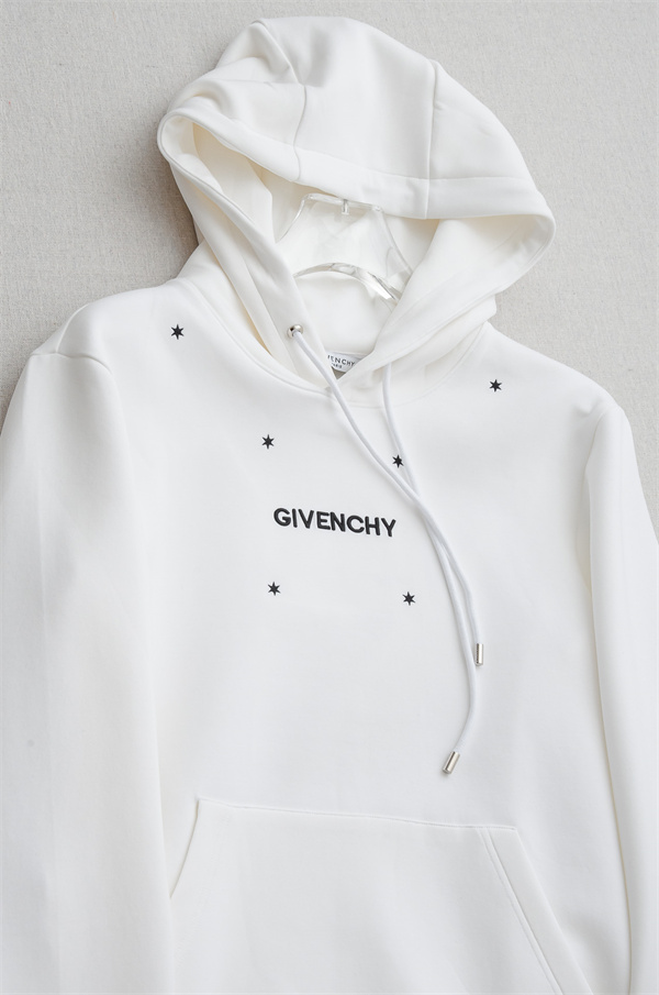 こちらのGIVENCHY ジバンシィ コピーアイテムは、クリーンなホワイトカラーを基調に、ミニマルなロゴ表現と繊細なスターモチーフをあしらったフーディーです。装飾を抑えたデザインの中に、ブランドらしいモード感が漂い、主張しすぎないのに印象に残る佇まいを演出します。洗練された空気感が、大人の余裕を自然に引き立てます。