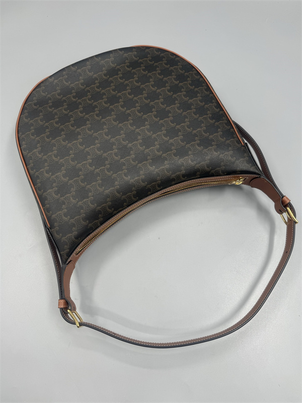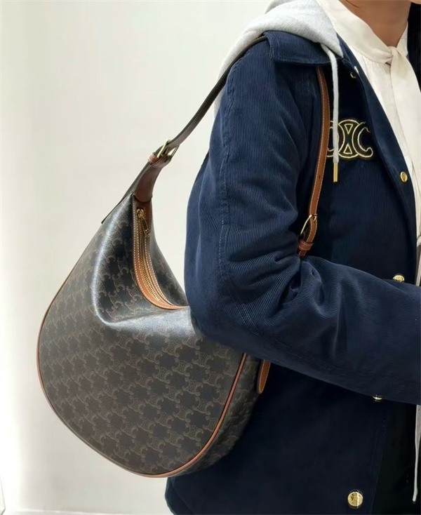 こちらのCELINE セリーヌ コピーアイテムは、ブランドを象徴するトリオンフ総柄を全面にあしらった、エレガントなショルダーバッグです。やわらかなカーブを描くフォルムが印象的で、クラシックなモノグラムデザインでありながら、どこかモダンで洗練された雰囲気を放ちます。落ち着いたブラウンを基調とした配色が、大人の装いに自然と溶け込みます。