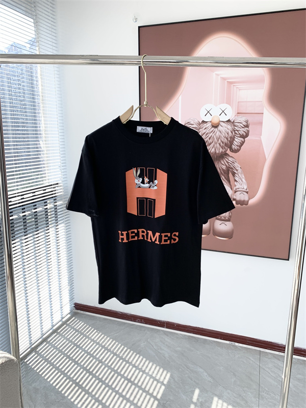 上品なラグジュアリースタイルをカジュアルに楽しめる、Hermès エルメス コピーデザインのメンズ半袖Tシャツです。フロントにはブランドを象徴する印象的なグラフィックとロゴプリントを配置し、シンプルな中にも高級感と存在感を感じさせるデザインに仕上がっています。ブラックとホワイトの2カラー展開で、どちらもコーディネートしやすい万能カラーです。